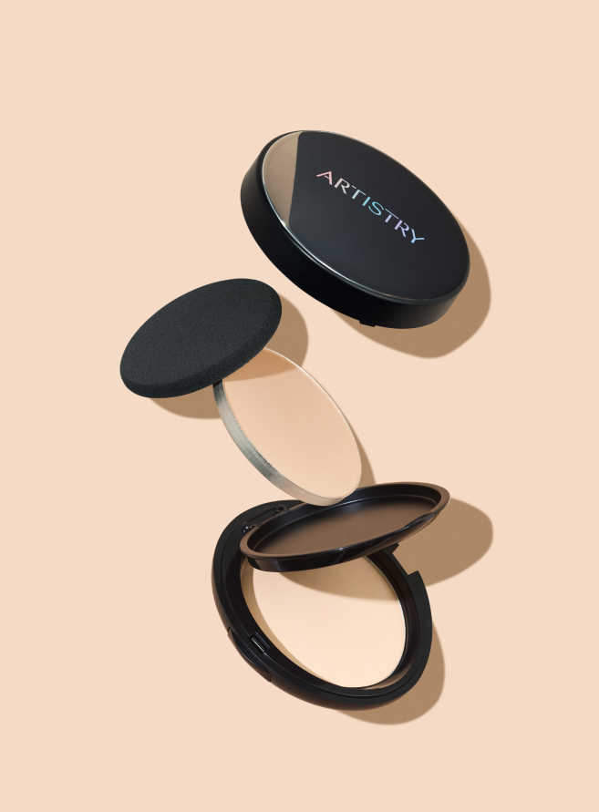 After following your ARTISTRY skincare routine, begin your makeup look by applying the EVER PERFECT Powder Foundation. (Optional: Apply ARTISTRY FUTURE GLOW Serum Concealer if needed to conceal imperfections before applying powder foundation.)